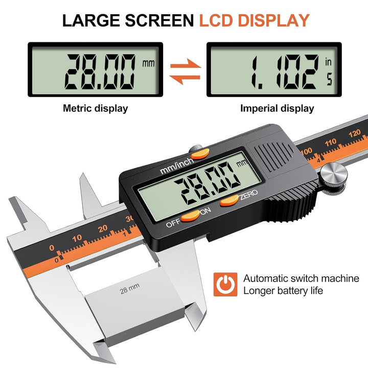 - Lesefreundlich: Der angepasste LCD-Bildschirm des Messschiebers bietet Ihnen ein perfektes Lesevergnügen, ohne Ihre Augen zu belasten. Und die Daumenfeststellschraube lässt sich leicht verschieben, um eine präzise Positionierung und Feineinstellung zu