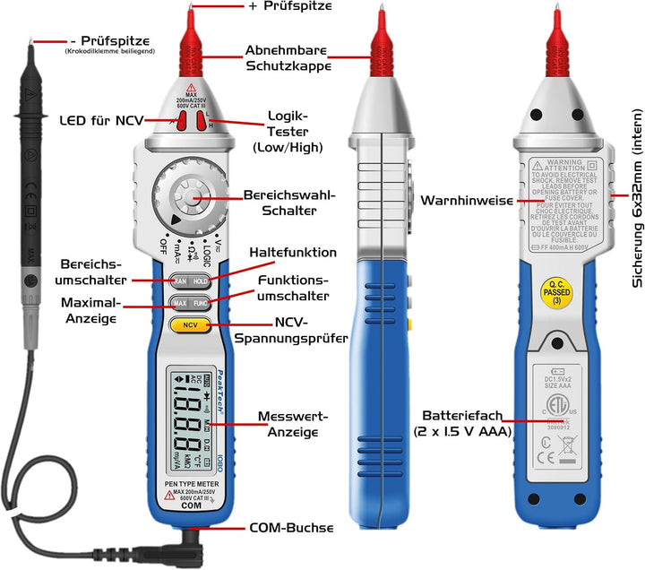 - Praktisches Multimeter: Der P 1080 ist eine Neuentwicklung nach den neuesten Sicherheitsanforderungen. Ausgestattet mit einem kontaktlosen Spannungsprüfer (NCV) und auch zum Lokalisieren von spannungsführenden Kabeln geeignet.