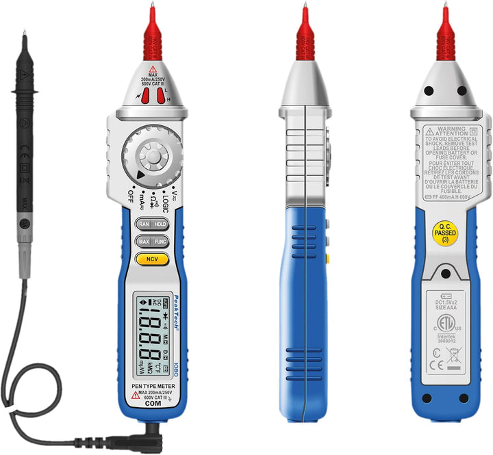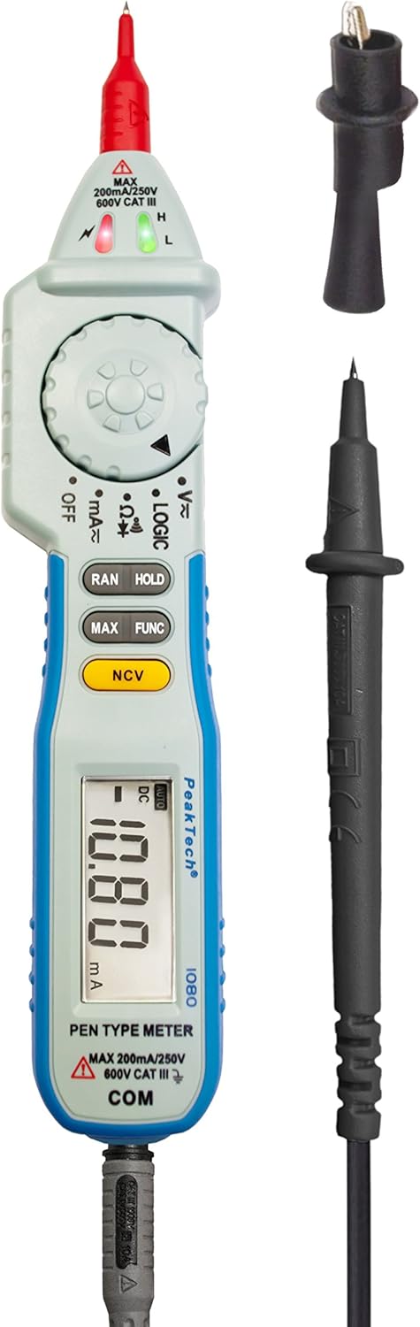 - Zuverlässige Tests: Das Stiftmultimeter kann Kontinuitäts- und Logiktests mit der HI/LO-LED-Anzeige durchführen. Der Drehschalter ermöglicht eine bequeme Einhandbedienung und schnelle Ergebnisse.