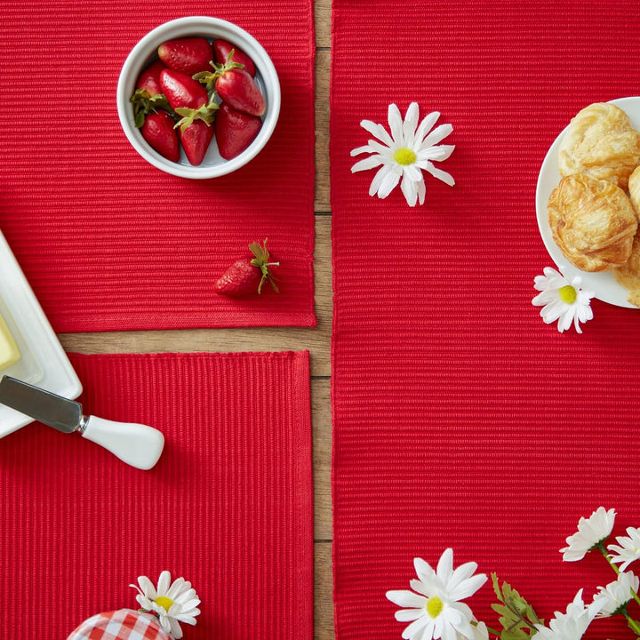 DII Basic Everyday Gerippte Tischset 100% Baumwolle Tischset 13x19 Tango Red 6-teilig Rot - Tango Re