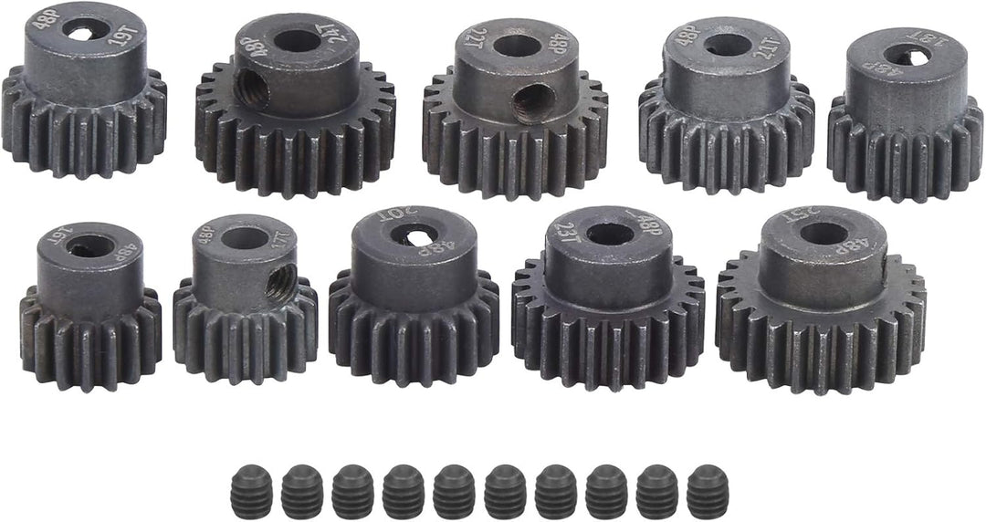 - 16T / 17T / 18T / 19T / 20T / 21T / 22T / 23T / 24T / 25T ist die Anzahl der Zähne am Ritzel. Stellen Sie sicher, dass Stirnrad und Ritzel die gleiche Steigung haben, da sonst die Zähne nicht ineinander greifen.