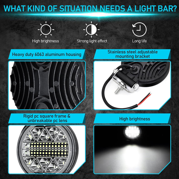 - UPGRADED DESIGN - Unsere runden LED-Pods haben eine Lebensdauer von ca. 50.000 Stunden mit Schutzart IP68. Wasserdicht, staubdicht, bebensicher, korrosionsbeständig für raue Umgebungen. Verbesserte PC-Objektivoberfläche mit hoher Lichtdurchlässigkeit