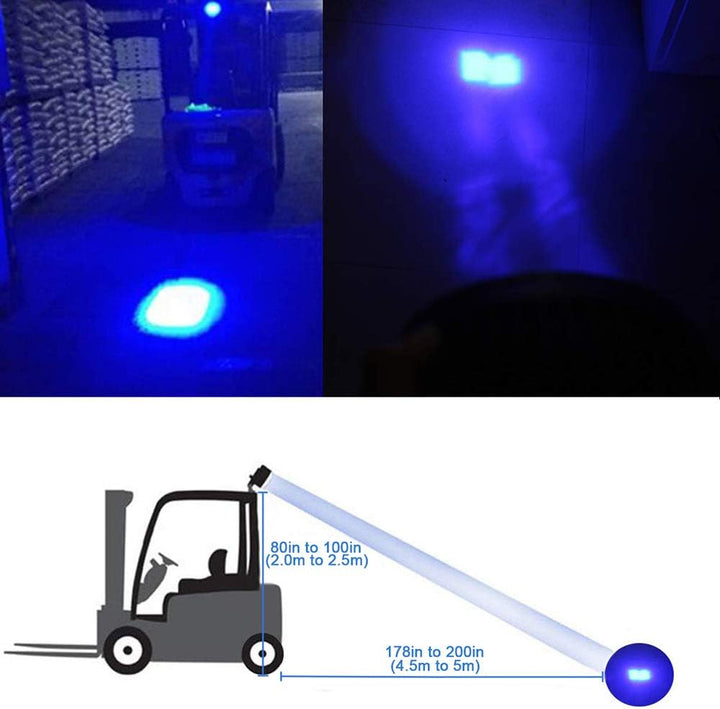 - Sicheres Design: Das Licht ist rein blau, der Punkt ist klar, super hell und es ist weich und nicht blendend. Das Gabelstaplerwarnlicht wird auf der hinteren Stossstange des Gabelstaplers platziert, und die blaue Blende wird etwa 3-5 Meter hinter dem