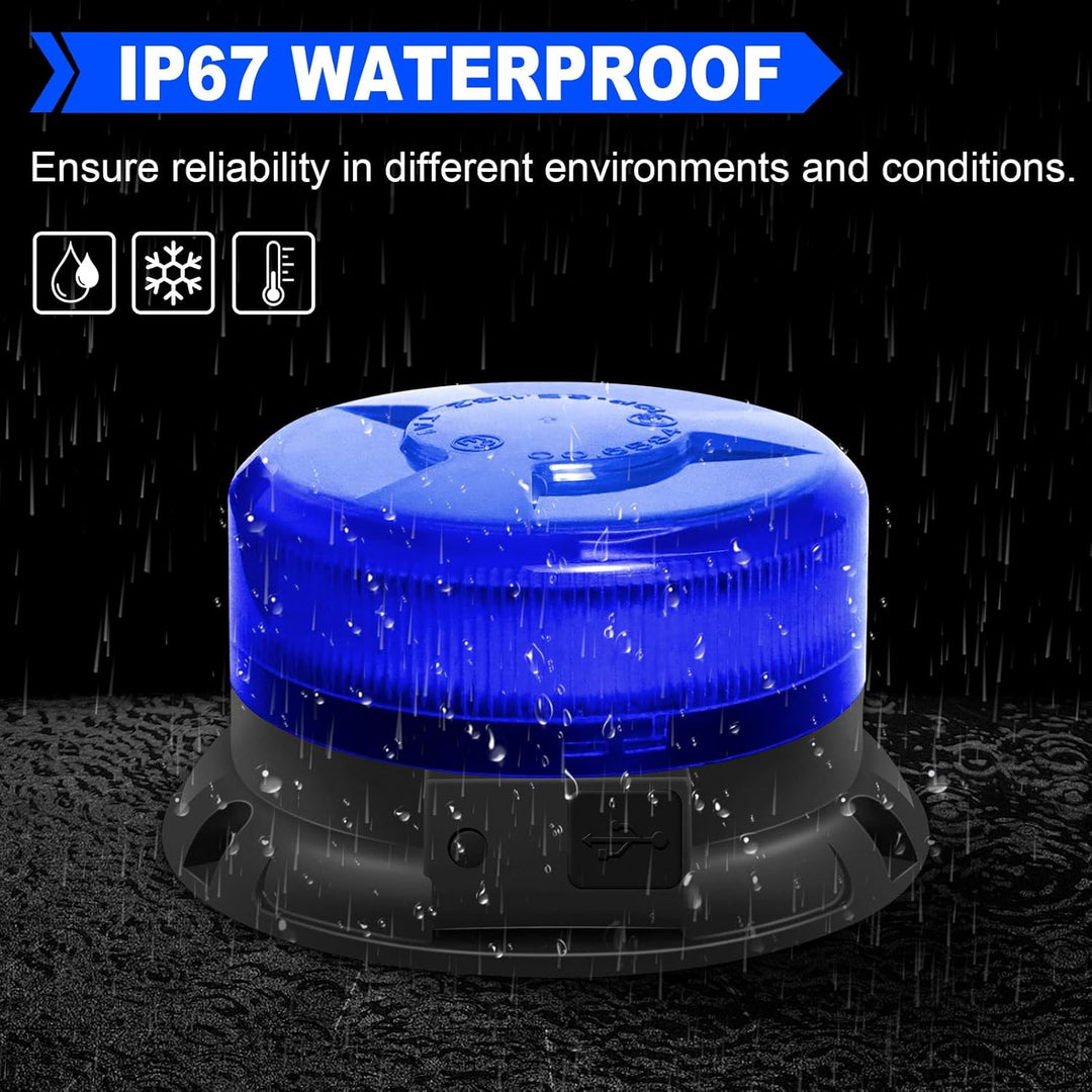 - Feste Magnetfuss - Jede Blues Rundumleuchte ist mit Hochleistungsmagneten an der Basis ausgestattet, die in Sekundenschnelle am Dach Ihres Autos, polizei, Lkws, Traktor oder Notfallfahrzeugs befestigt werden und sich auch bei Geschwindigkeiten von bis zu