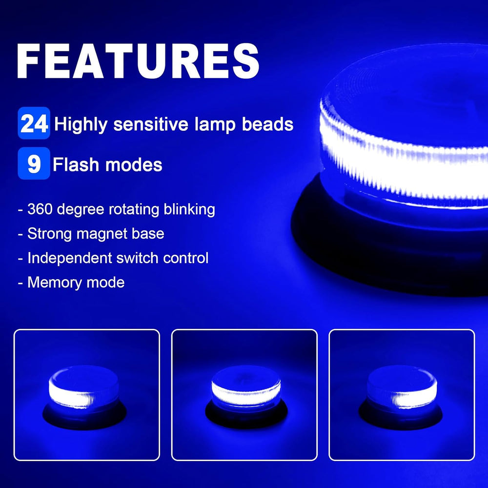 - Licht auf der Strasse -Blaulicht batterie hat 24 Leuchtkugeln. Vollständige 360-Grad-Abdeckung aller Winkel zur Maximierung der Lichtleistung. Sorgen Sie für eine effektivere Warnung anderer Fahrzeuge, leuchten Sie Ihren Weg aus, egal bei welchem
