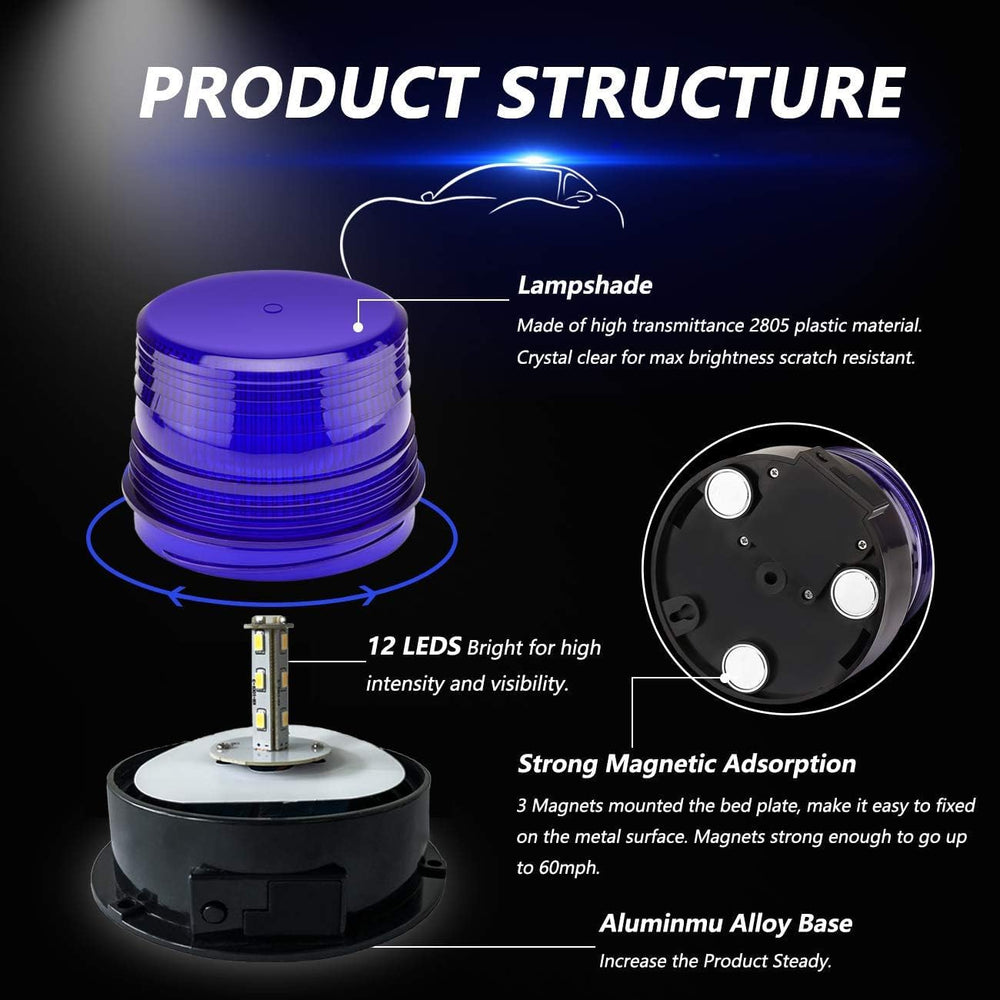 - ABMESSUNGEN - 5,28 (Höhe) * 6,54 "(Magnetfuss) Leicht zu tragen. Kabellänge bis zu 110 Zoll. led emergency lights for vehicles blue, vehicle warning lights, led beacon magnetic,strobe beacon