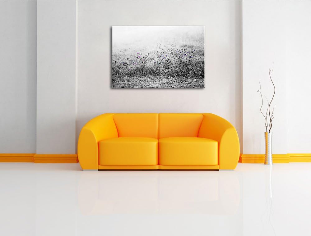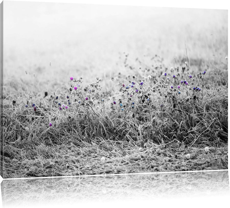 Distel Feld im Retro Look schwarz/weiss Format: 100x70 auf Leinwand, XXL riesige Bilder fertig gerah