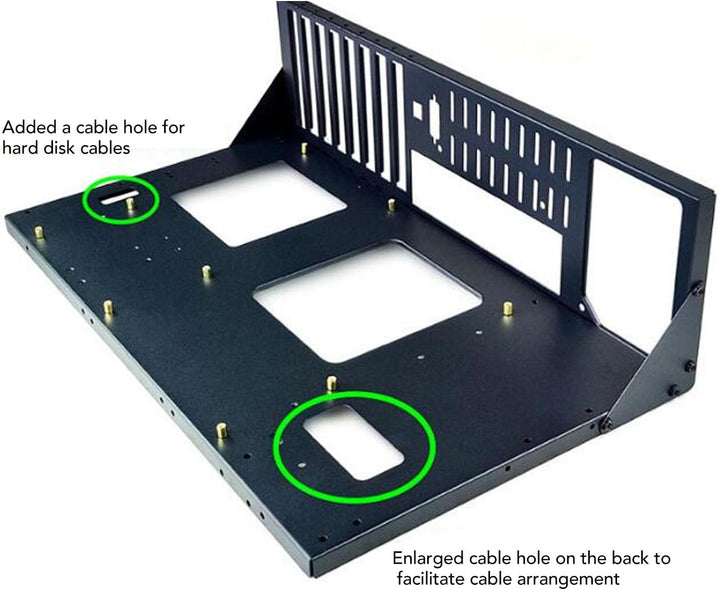 - Design der Kabelführungslöcher: Dieses Computer-Motherboard-Gehäuseregal mit Kabelführungslöchern unterstützt die Kabelführung auf der Rückseite und sorgt so für mehr Ordnung im gesamten Gerät.