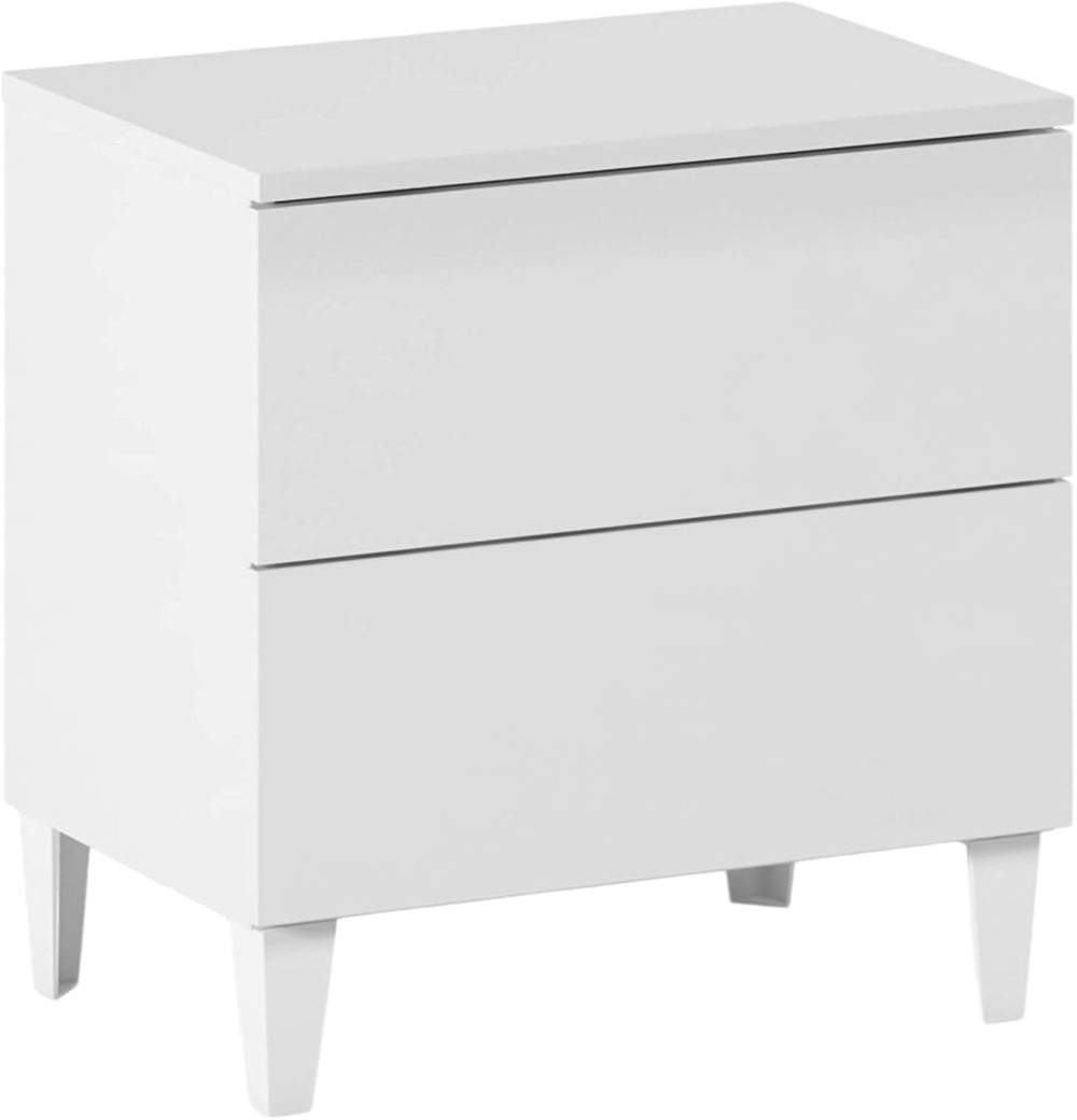 - NACHTTISCH NASHVILLE - Nachttisch mit 2 Schubladen, Nachttisch, Niedrige Kommode für Schlafzimmer, cm 50x34h49, Glänzend Weiss