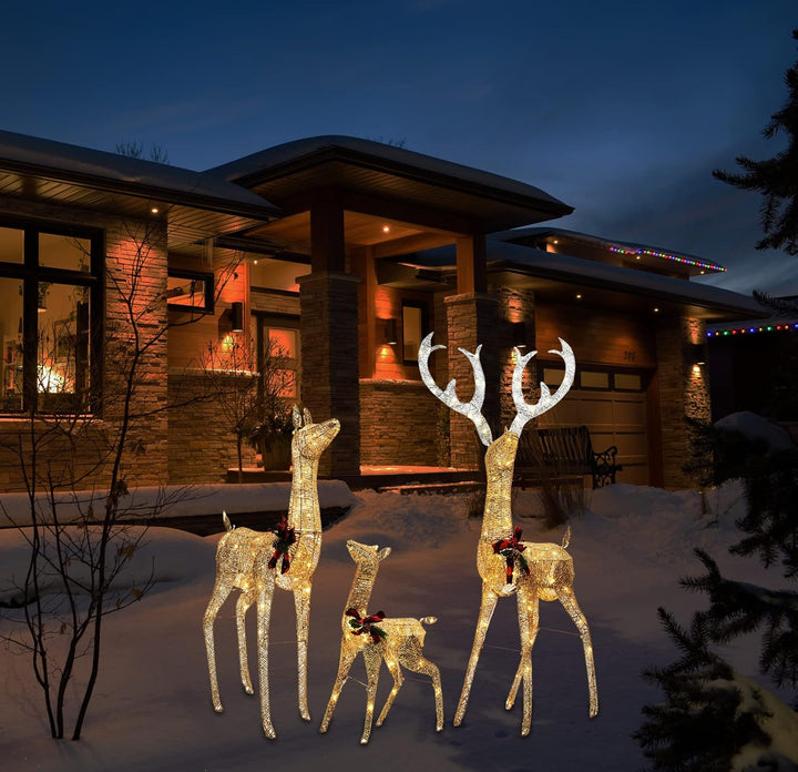 - Rentier Familie (RTF-3): 3 x LED Rentier Figuren: Hirsch (mit 105 LEDs), Reh (mit 64 LEDs) und Rehkitz (mit 18 LEDs)warmweiss (2500K) LEDs. Masse Papa Rentier: (H) 158cm x (B) 32cm x (L) 77cm. Masse Mama Rentier: (H) 122cm x (B) 32cm x (L) 76cm. Masse