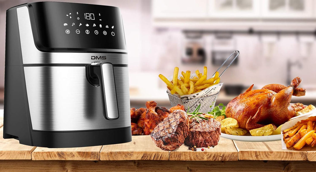 - Vielfältige Funktionen: Unsere DMS XXL Heissluftfritteuse mit einem Fassungsvermögen von 6 Litern eignet sich optimal zum Auftauen, Backen, Braten, Dörren, Frittieren, Grillen und Warmhalten. Dieses vielseitige Küchengerät hilft Ihnen verschiedenste Speisen, wie z.B. Fisch, Fleisch, Gemüse oder auch Desserts zuzubereiten.