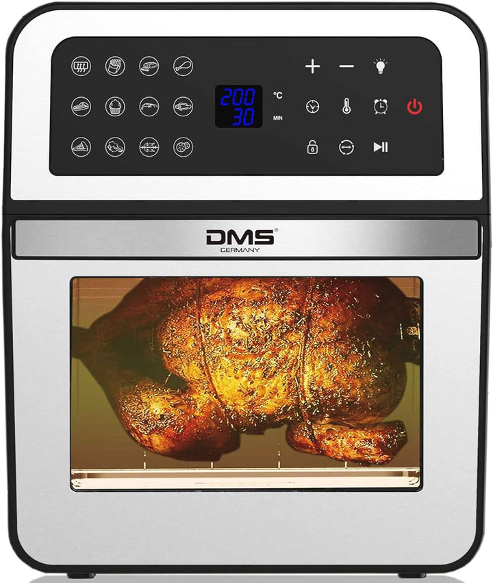 - Vielfältige Funktionen: Unsere DMS XXL Heissluftfritteuse mit einem Fassungsvermögen von 12 Litern eignet sich optimal zum Auftauen, Backen, Braten, Dörren, Frittieren, Grillen und Warmhalten. Dieses vielseitige Küchengerät hilft Ihnen verschiedenste Speisen, wie z.B. Fisch, Fleisch, Gemüse oder auch Desserts zuzubereiten.