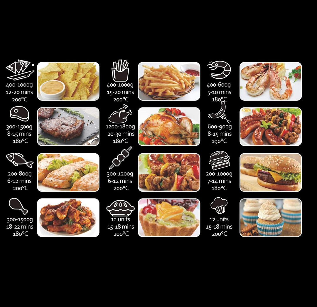 - Einfache Bedienung: Die DMS XXXL Heissluftfritteuse lässt sich von Ihnen durch 10 vorinstallierte Programme für die Zubereitung von Fleisch, Fisch, Gemüse und Desserts einfach und problemlos bedienen. Durch die hitzebeständige Scheibe behalten sie immer den Überblick.