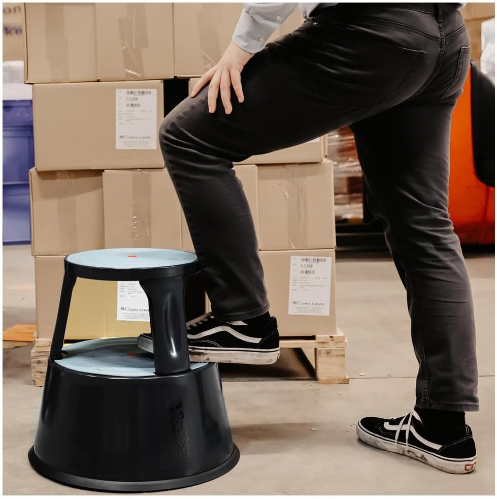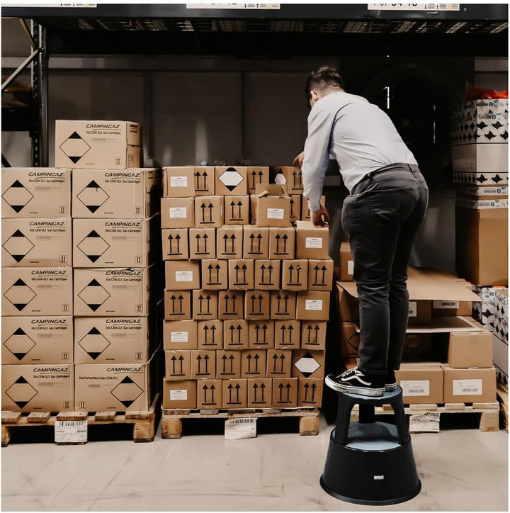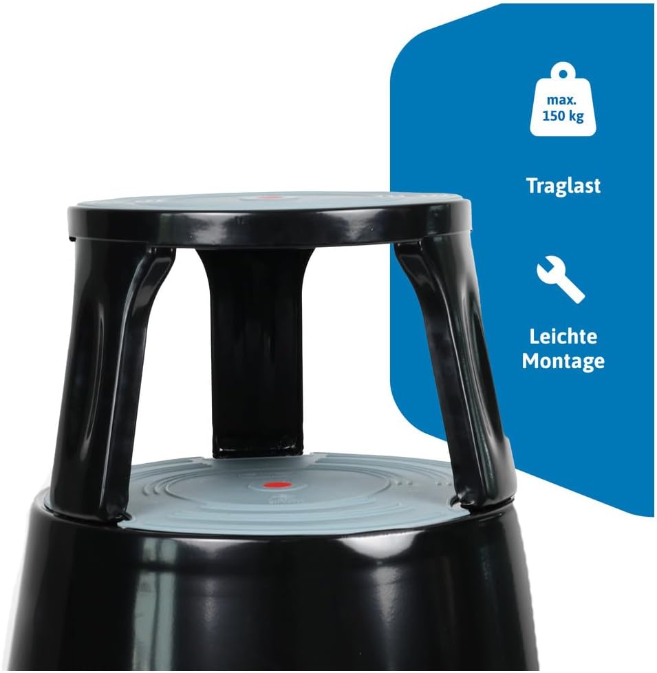Dönges Rollhocker, Metall, schwarz (Rolltritt Tritthocker Elefantenfuss) Material: Stahlblech/Tragkr