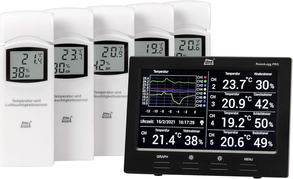 - Zusätzlicher Sensor zum kabellosen Übertragen von Temperatur- und Luftfeuchtedaten an Ihre dnt RoomLogg PRO (ASIN B07XRQ8YSS) sowie WeatherScreen PRO (ASIN B083WZWM5T)