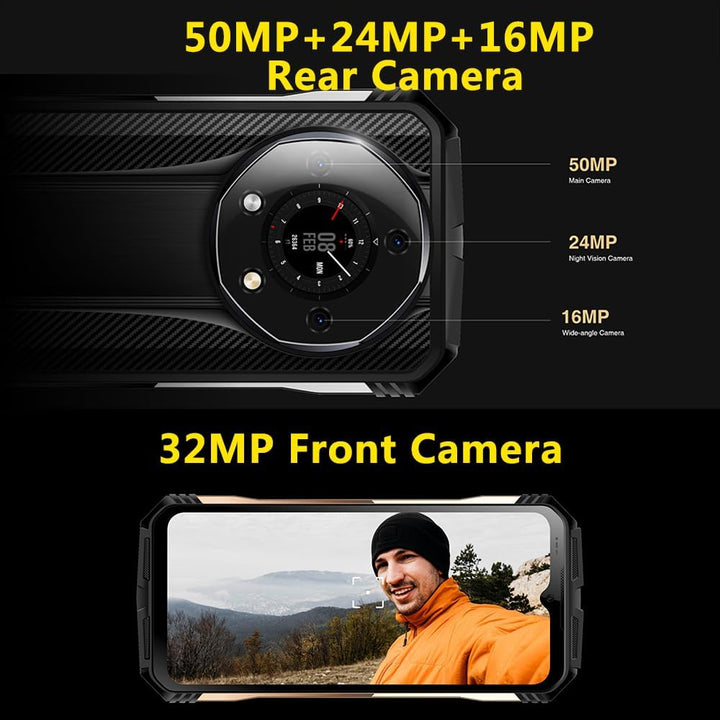 - 📷 【50 MP Rückfahrkamera + 24 MP Nachtsichtkamera +16MP + 32MP】 Das DOOGEE S110 Smartphone ist mit einer 50 MP Samsung Flaggschiff Level Kamera und einer 24 MP SONY Nachtsichtkamera ausgestattet, ausgestattet mit 2-Infrarot-Lichtern und