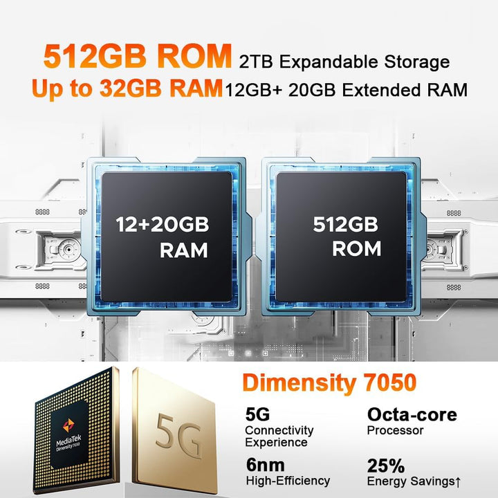 - 【32GB RAM + 512GB ROM & 2TB TF Card】Das DOOGEE S200 X 5G Ruggedised Smartphone ist mit 32GB DDR5 RAM (12GB physischer+20GB virtueller erweiterbarer) ausgestattet,was eine 50%ige Leistungssteigerung und eine 25%ige Reduzierung des Stromverbrauchs für