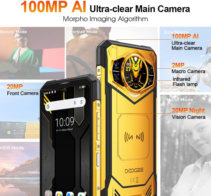 - 【Hochleistungs-Morpho-AI-Kamera + Ultra-HD-4K-Video】Das robuste 5G-Handy DOOGEE S200 X überzeugt mit kristallklaren 4K-Videos und lebendigen Farben. Seine innovativen KI-Funktionen revolutionieren die Mobile Fotografie: Intelligentes