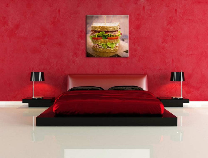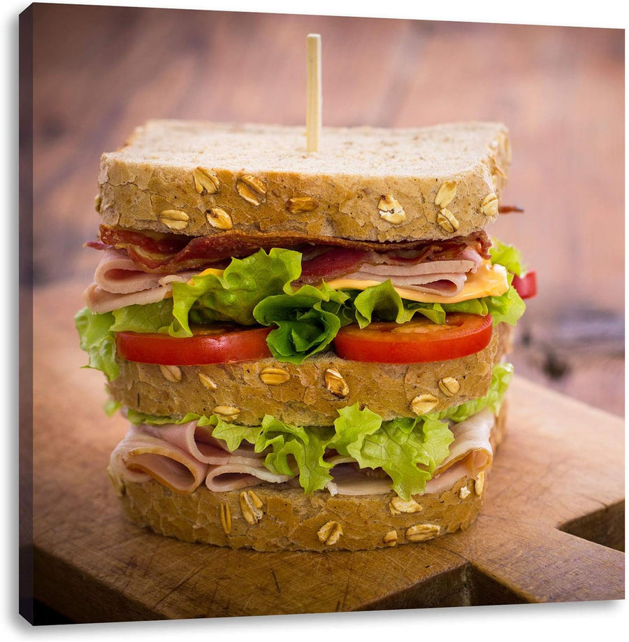Doppeldecker Sandwich, Format: 70x70 auf Leinwand, XXL riesige Bilder fertig gerahmt mit Keilrahmen,