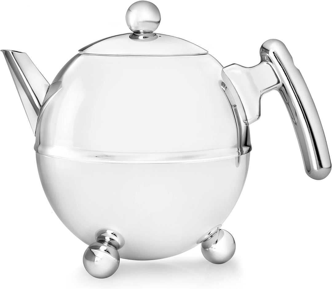 - Die grosse runde silberne 1.5 L Teekanne aus Edelstahl ist doppelwandig und isoliert Tee optimal