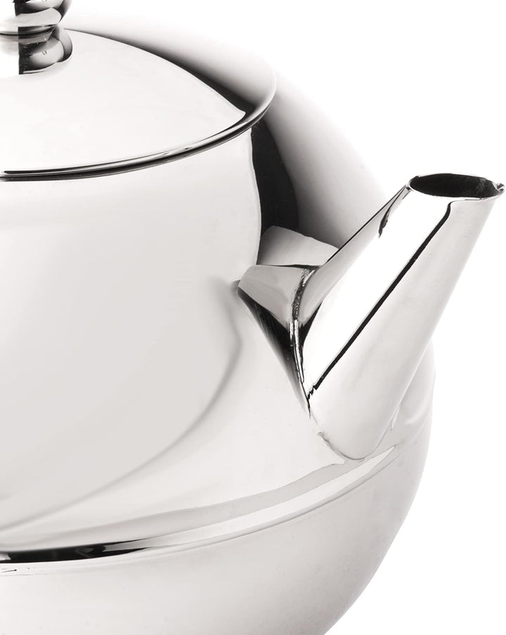 - Die besonders geformte Kannentülle der Edelstahlteekanne gestattet ein tropffreies Einschenken