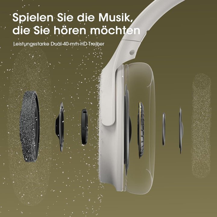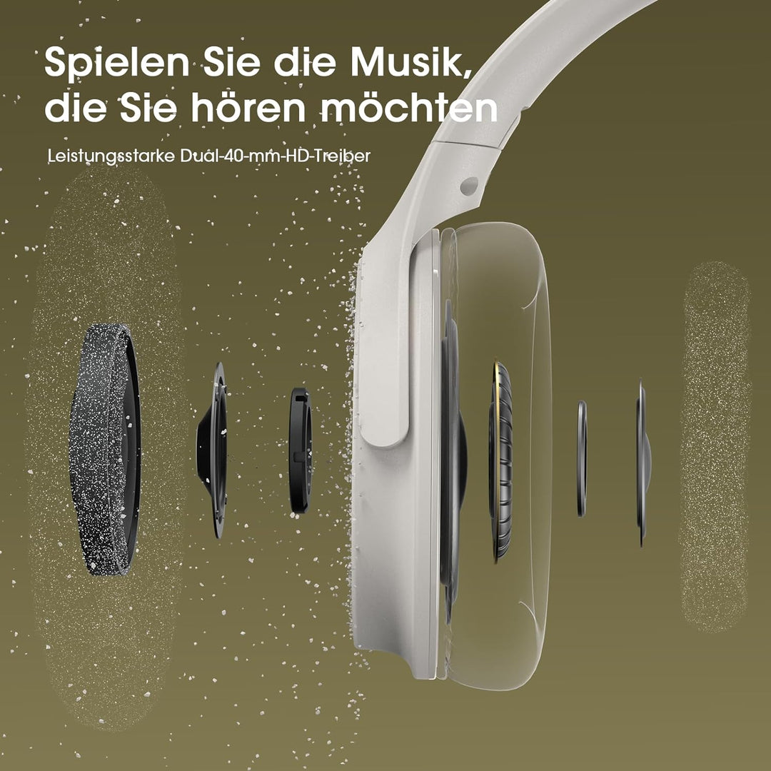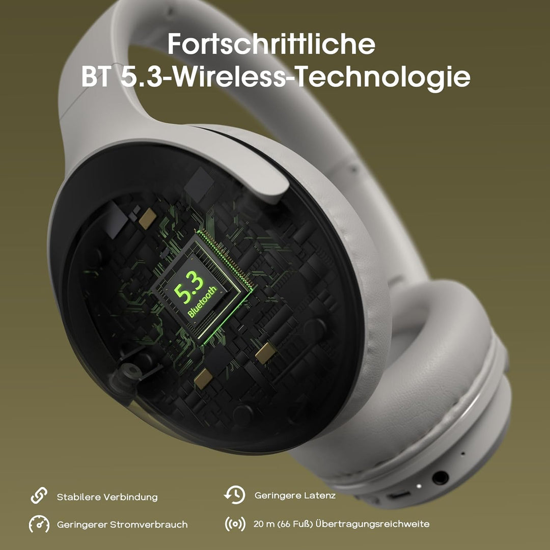 • 【Bluetooth 5.3 & Integriertes ENC-Mikrofon】 Unsere Overhead-Kopfhörer sind mit zwei 40 mm grossen Treibereinheiten und Bluetooth 5.3-Technologie ausgestattet und bieten eine stabilere Übertragungsgeschwindigkeit, geringere Latenz und eine bessere