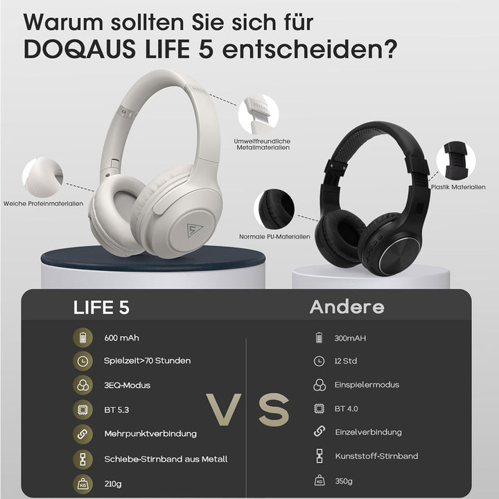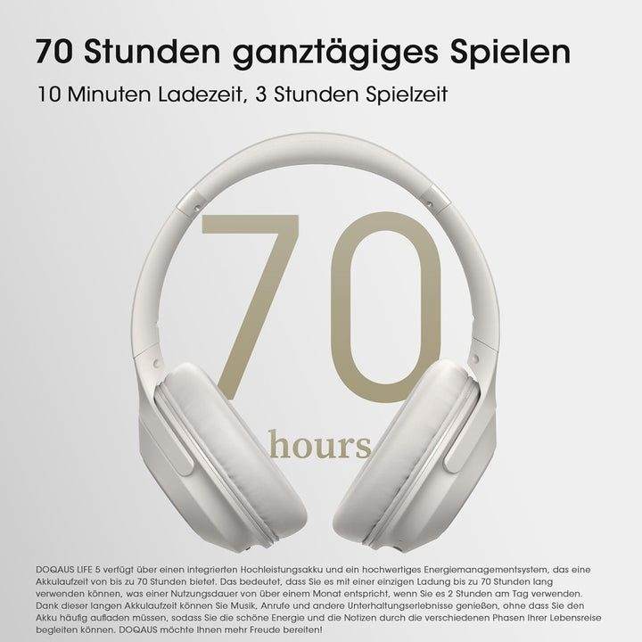 DOQAUS Bluetooth Kopfhörer Over Ear, 70 Stunden Spielzeit,Kopfhörer Kabellos Bluetooth mit 3 EQ-Modi