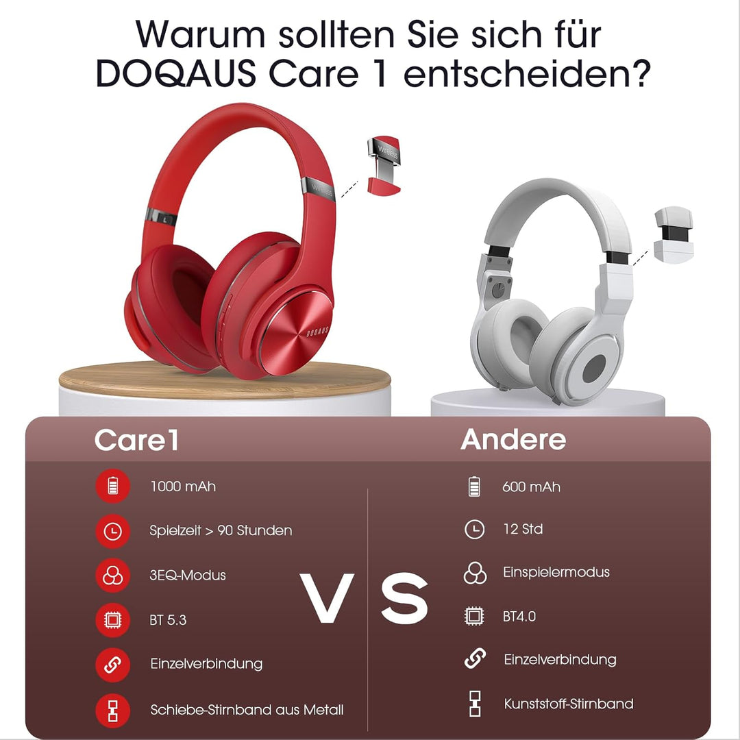 - 【Optimierte Klangqualität mit 3-EQ-Modi】 DOQAUS ist stets auf dem Laufenden, um bessere Klangeffekte und ein besseres Hörerlebnis zu erzielen. Ein grosser Schritt, den DOQAUS getan hat: DOQAUS Care 1 Over Ear Kopfhörer Bluetooth verfügen über 3