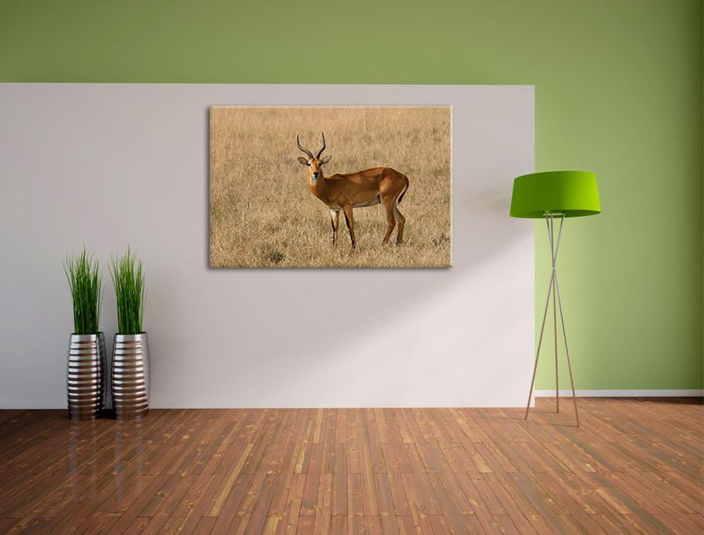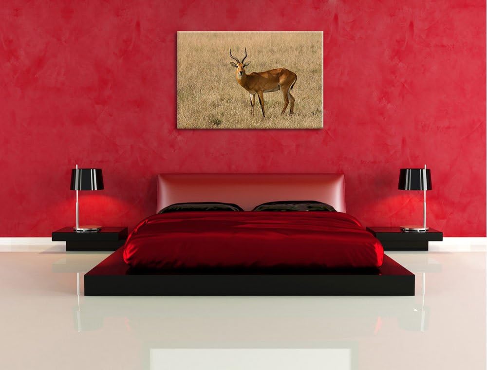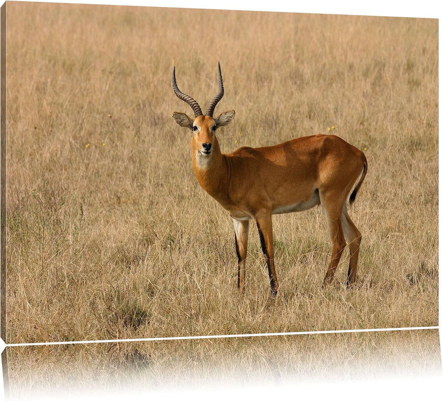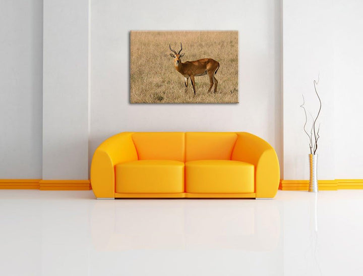 Dorkasgazelle im trockenen Gras Leinwand, XXL riesige Bilder fertig gerahmt mit Keilrahmen, Kunstdru