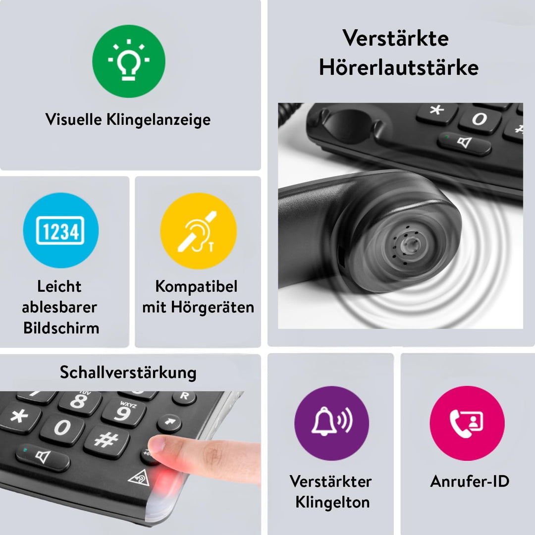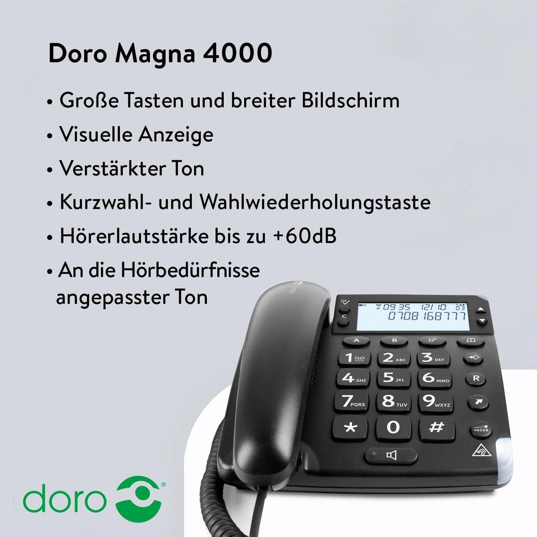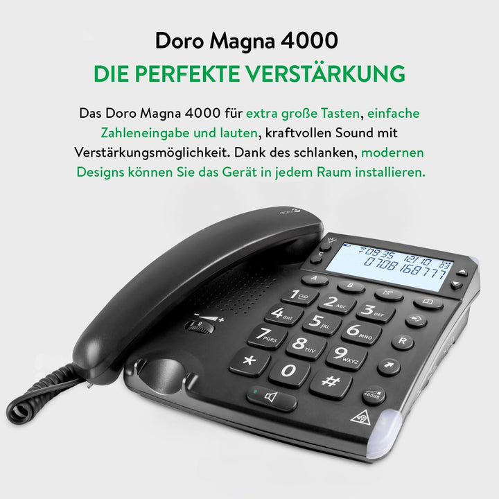 Doro 6377 Magna 4000 Schnurgebundenes Grosstastentelefon mit grossem hintergrundbeleuchtetem Display