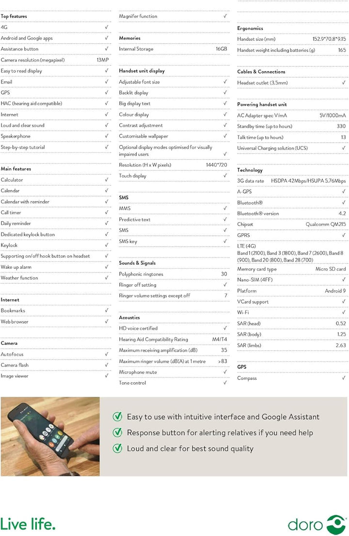 - Lauter und klarer Klang: Die beste Klangqualität (HD-Stimme) sorgt dafür, dass Sie auch in lauten Umgebungen immer klar hören können. Dieses Handy ist auch Hörgerätekompatibel (HAC) und erfüllt die M3/T4-Level-Rating.