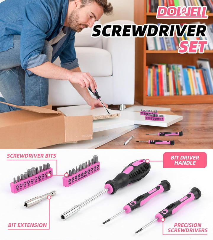 DOWELL Pinkes Werkzeugset für Damen, Mädchen, Damen, Haushaltswerkzeug-Set mit 35,6 cm Werkzeugtasch