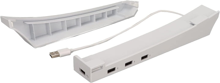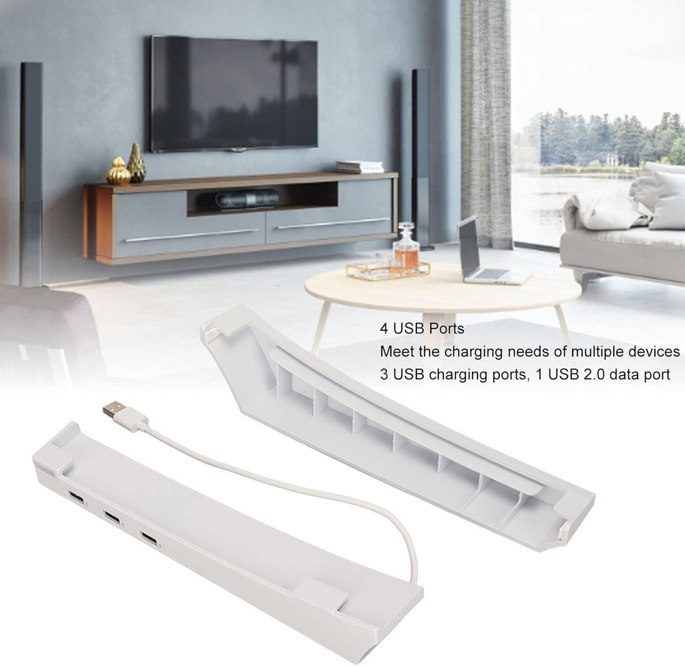 - Horizontaler Standfuss für Spielkonsolen: Der Standfuss für PS5 verfügt über einen USB 2.0-Datenanschluss und drei USB-Ladeanschlüsse, was die Verwendung bequemer macht.
