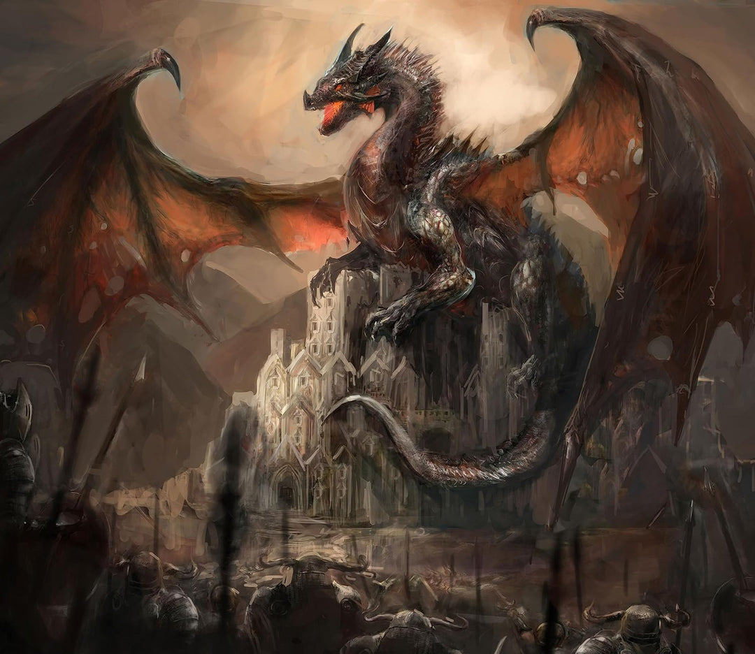 Drache schützend über Burg Herdabdeckplatte & Spritzschutz aus Echtglas | Für Herd-Kochfelder | 60x5