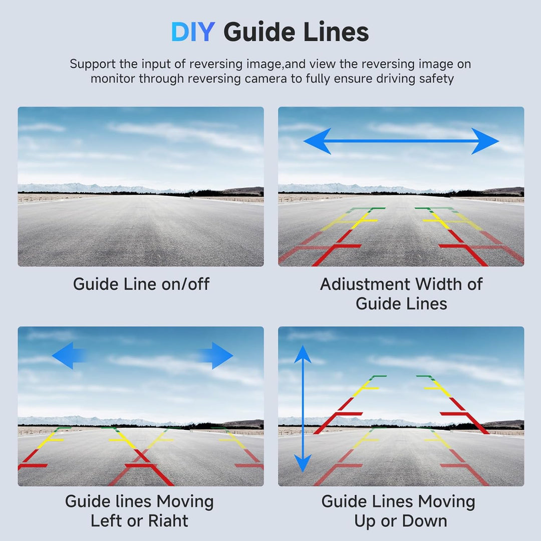 - 7 Zoll Rearview Monitor - 2 Kanal Videoeingang, grosser Bildschirm, scharfes Bild. Bild kann horizontal und vertikal für Spiegel oder normale Betrachtung gedreht werden, einstellbare Helligkeit, Kontrast und Farbe.