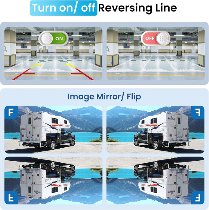- 【Breites Anwendungsspektrum】Die drahtlose Rückfahrkamera set ist angeschlossen an die Häfen von DC: Sehr bequem, Energie zu nehmen, kann es für Überwachungssicherheitssystem zu Hause auch verwendet werden. Einfache Installation, Anschluss kompakter, ich sorge genau für Übertragungssignale, es garantieren Bilder umgekehrt sicher und klar und stabil. 12V-24V für Wohnmobil /Wohnwagen/LKW/Bus/Anhänger usw.