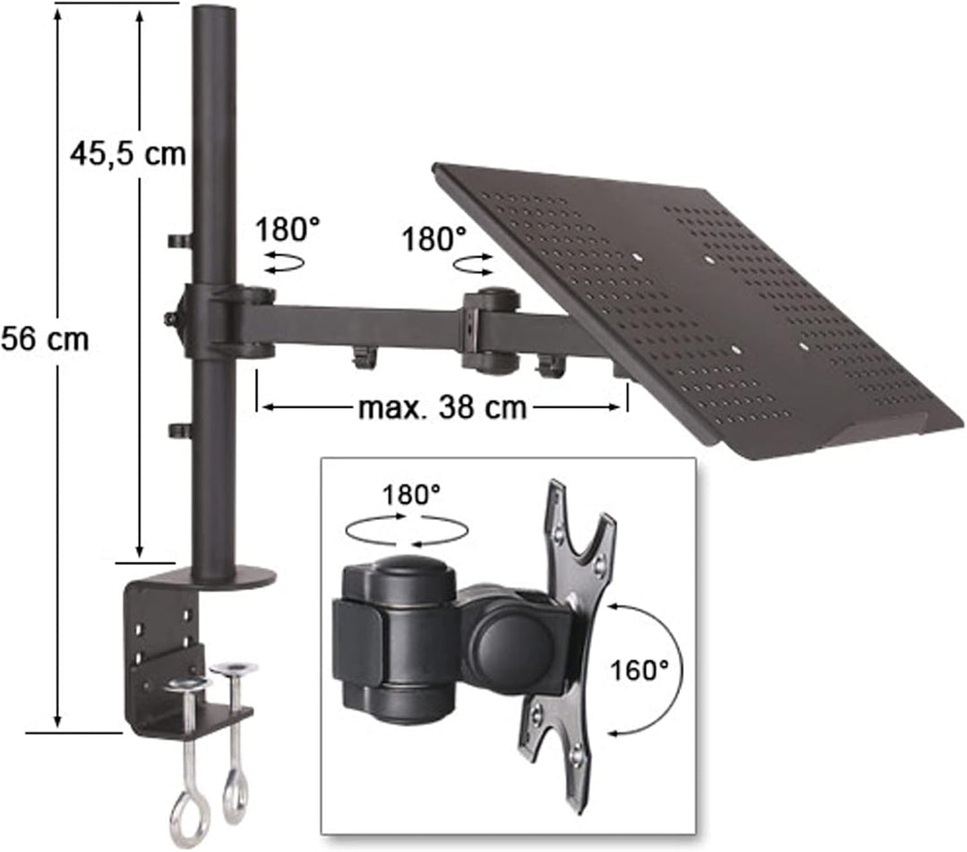- Schwarze Tischhalterung mit Ablage für alle passenden Laptop Notebook Netbook