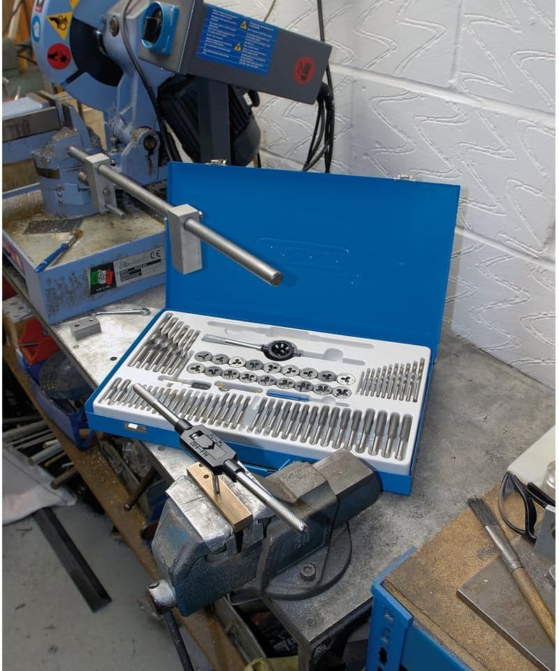 - Lieferumfang:Gewindebohrer, Vorschneider, Fertigschneider und Schneideisen und Gewindebohrerhalter, Schneideisenhalter, Halter für Gewindebohrer, Schraubenzieher, Screwpitch.