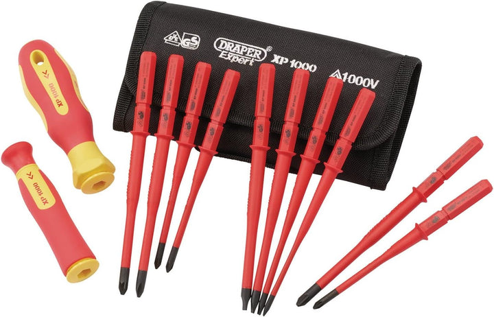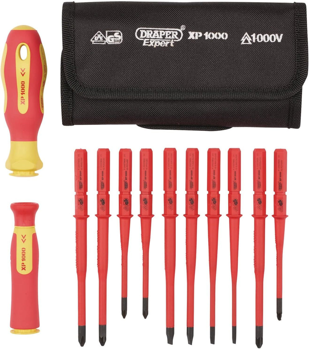- Der austauschbare VDE-Schraubendreher ist aus hochwertigem Stahl für zusätzliche Festigkeit und liefert eine schnelle und einfache automatische Verriegelung. Alles einfacher gemacht mit dem ergonomischen Softgrip-Griff ermöglicht ein freies Drehen in