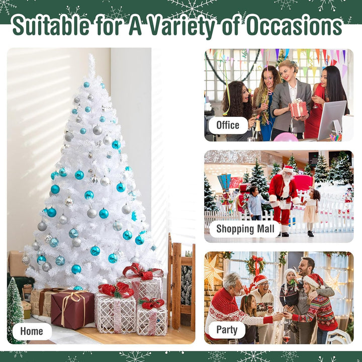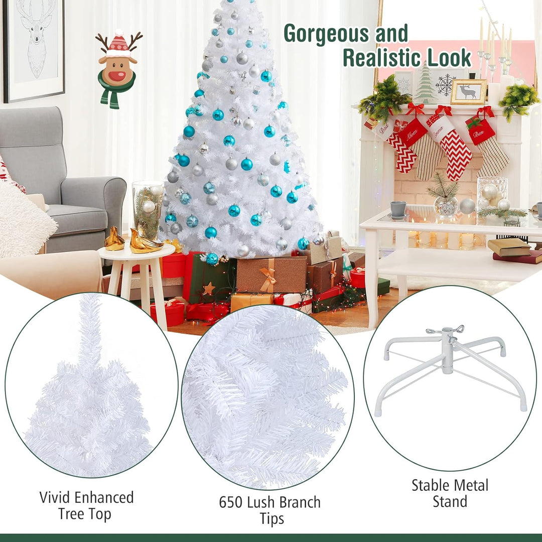 DREAMADE 150/180/210/240cm Weihnachtsbaum Weiss, Künstlicher Tannenbaum mit Metallständer, Christbau