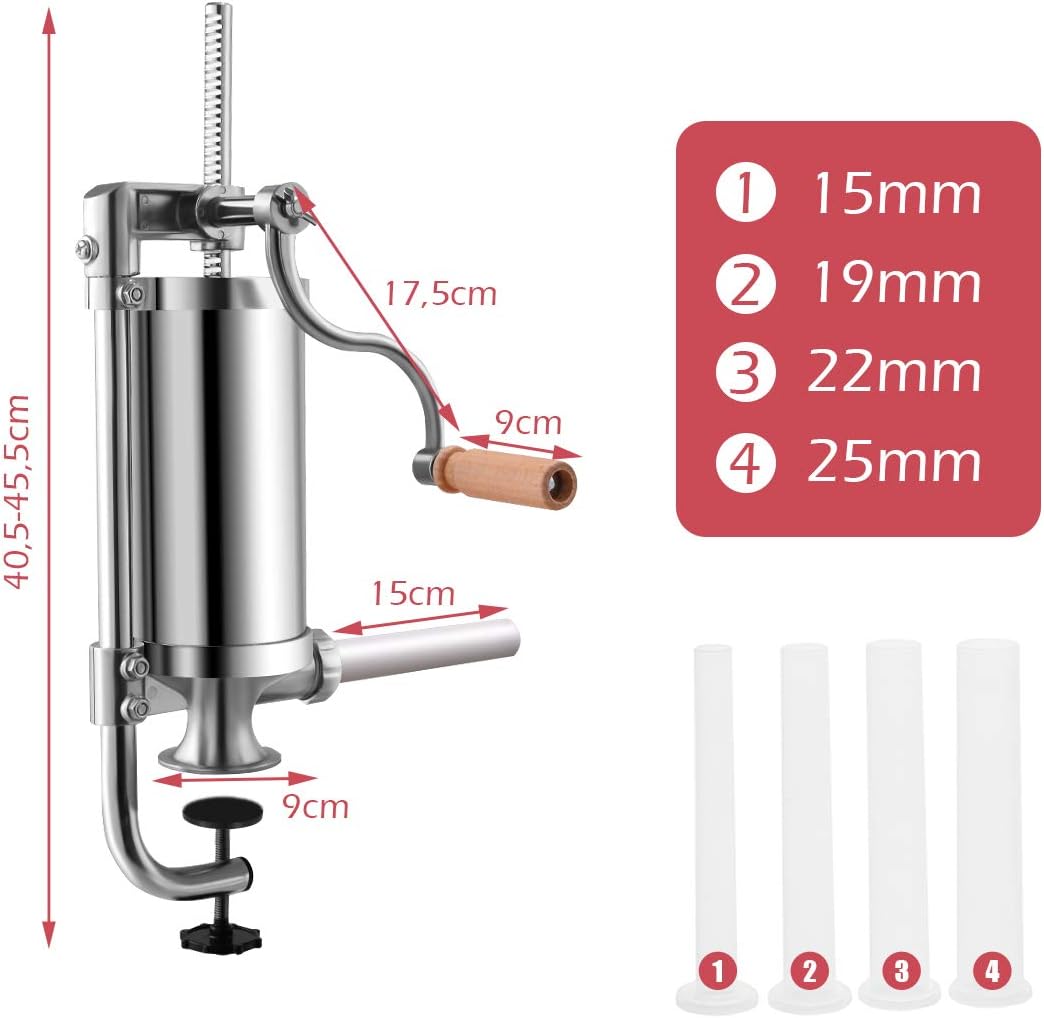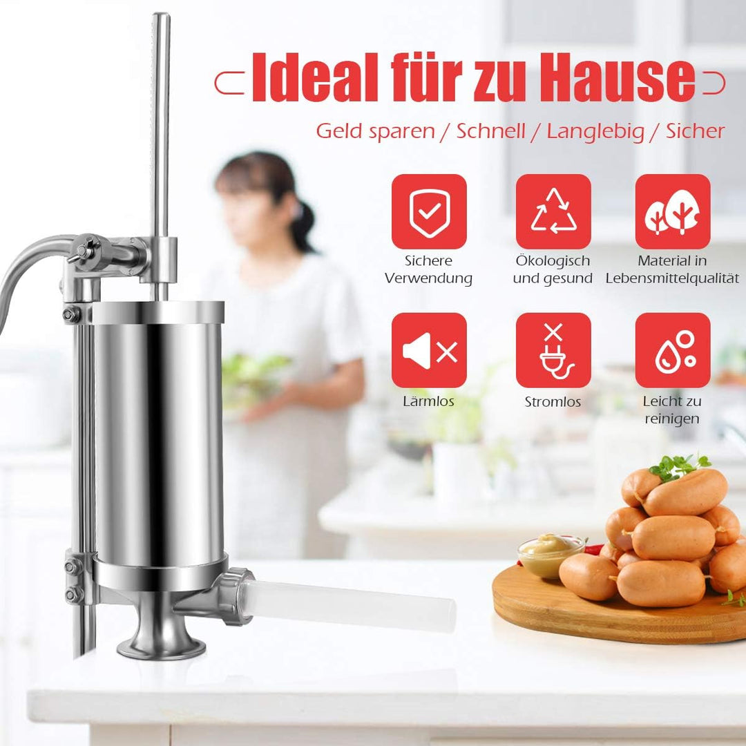 - Gesunder und leicht zu reinigen - Mit dem Einzigartigen Design wird das Fleisch nicht auf der innen Seite stecken. Die abnehmbaren Füllrohre sind aus PP-Materialien und einfach zu reinigen. Dadurch wird alles gesunder und einfach. Es gibt insgesamt 3 Kapazitäte von der Wurstmaschine für Ihre Wahl.