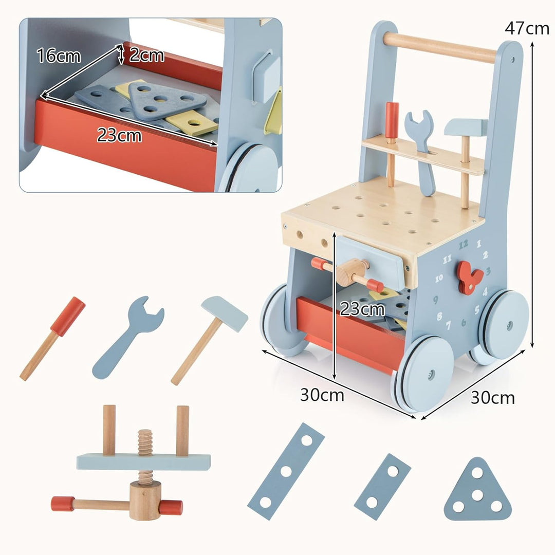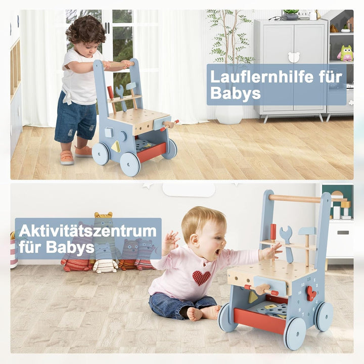 - 2-in-1-Design - Das einzigartige 2-in-1-Montessori-Spielzeug für Kinder lässt sich nahtlos in einen Lauflernwagen oder ein Aktivitätszentrum für Babys verwandeln. Weiterhin ist es auf beiden Seiten mit einem Formsortierer und einer Drehuhr