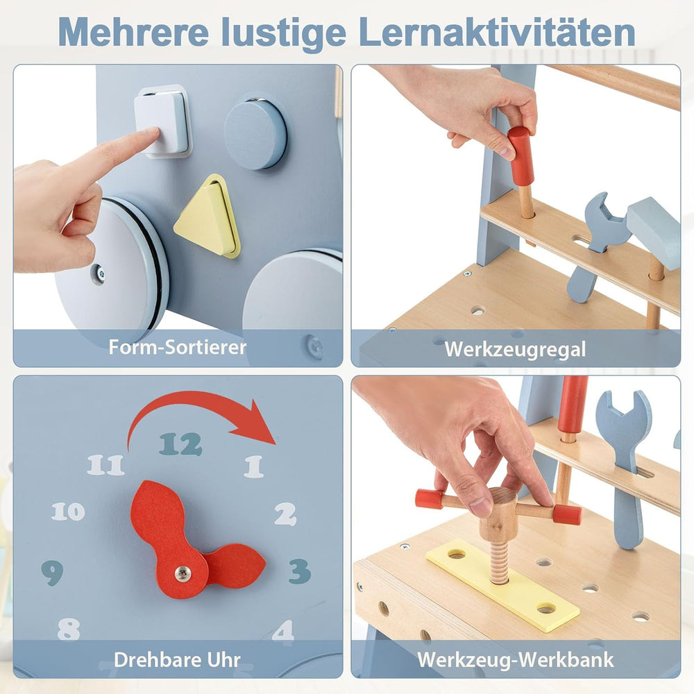 - Lernen durch Spielen - Das Aktivitätszentrum ist so konzipiert, dass es Kleinkinder beschäftigt und zum Lernen anregt und ihre Vorstellungskraft, Hand-Augen-Koordination, Feinmotorik, Wahrnehmung usw. fördert. Ausserdem ist es eine gute Geschenkidee