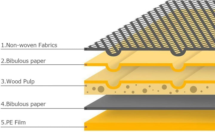 • 🐕 5-lagiges Design - Unsere Welpenunterlage verfügt über 5 Lagen, nämlich Faservlies-, Fliesspapier-, Holzstoff-, Fliesspapier- und PE-Schicht, die eine ausgezeichnete Saugfähigkeit garantieren. Darüber hinaus sind unsere Pinkelpads für