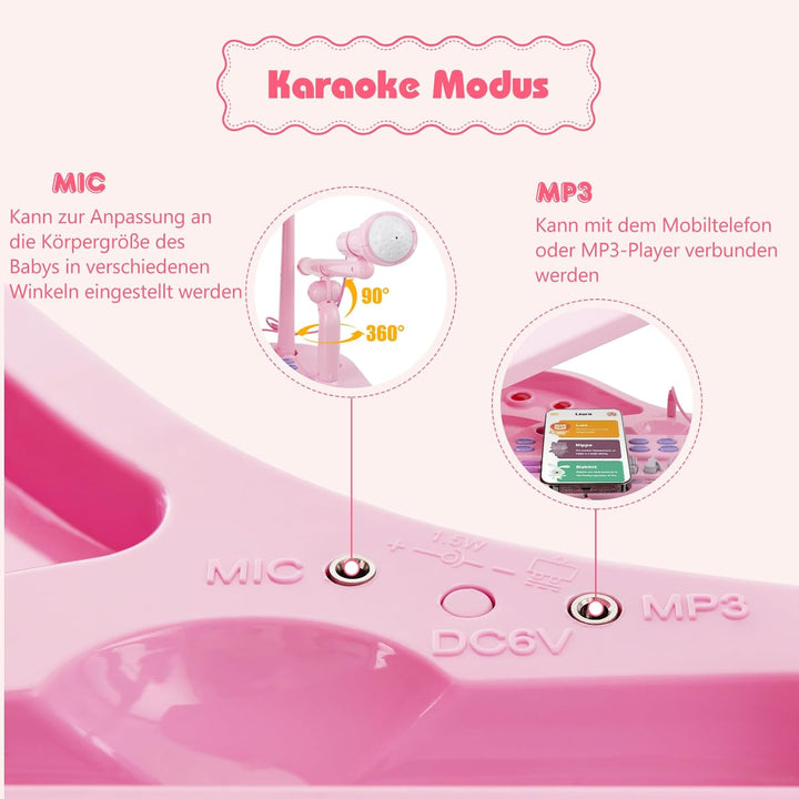 - 🎵Sicheres Material & Stabile Struktur - Hergestellt aus umweltfreundlichem ABS- und PE-Material, ist die mini Klaviertastatur sicher für Ihre Kinder zu spielen. Bestehend aus einer Klavierabdeckung, Beine, ein Mikrofon, ein Mikrofonständer und ein