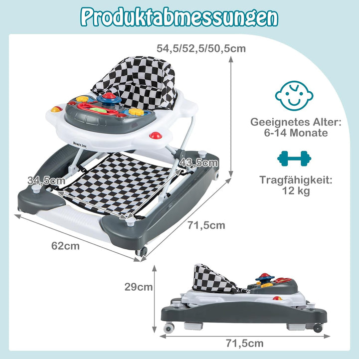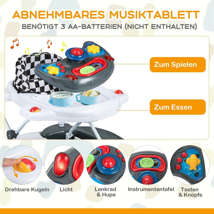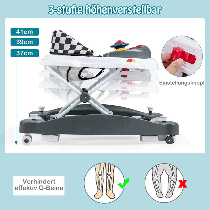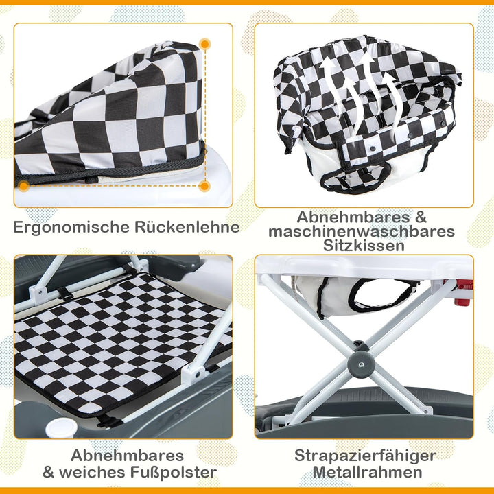 - Einfache Reinigung & Aufbewahrung - Die abnehmbare Musikablage und die maschinenwaschbare Sitzpolsterung der Lauflernhilfe erleichtern die Pflege und sorgen für eine saubere Umgebung für Ihr Baby. Bei Nichtgebrauch lässt sich das klappbare Design