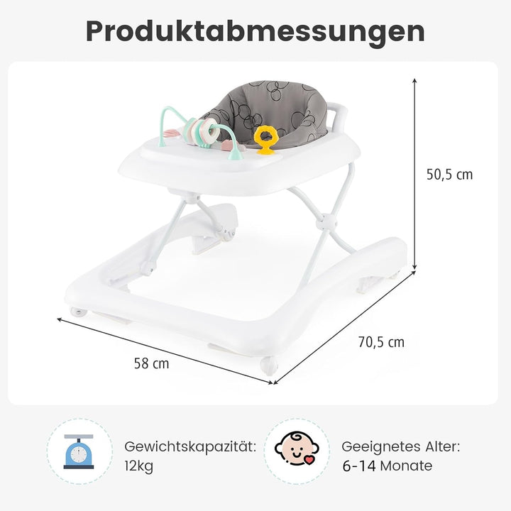 - 3-fach verstellbare Höhe - Der Baby Walker ist mit 3 verstellbaren Höhen von 45,5 cm, 48,5 cm bis 50,5 cm konzipiert, um Babys mit unterschiedlichen Körpergrössen zu unterstützen. Durch Anpassung an die richtige Höhe können Sie Ihrem Baby helfen,