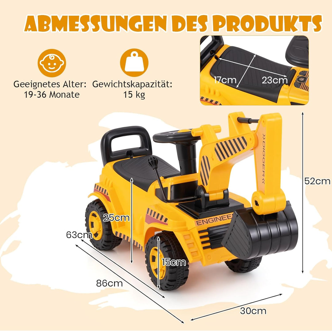 - Interaktives Bauspiel - Dieser Bagger zum draufsitzen wurde für kleine Baumeister im Alter von 19-36 Monaten entwickelt und fördert fantasievolles Spielen und die Entwicklung motorischer Fähigkeiten. Er ist perfekt für Abenteuer drinnen oder draussen