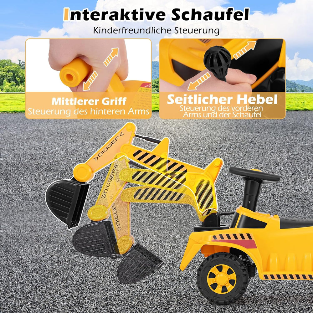 - Verstellbare Schaufel - Ausgestattet mit einer voll funktionsfähigen und verstellbaren Schaufel können Kinder ganz einfach schaufeln, graben und kippen wie ein echter Bauarbeiter. Die 2 flexiblen Hebel ermöglichen eine einfache Bedienung und