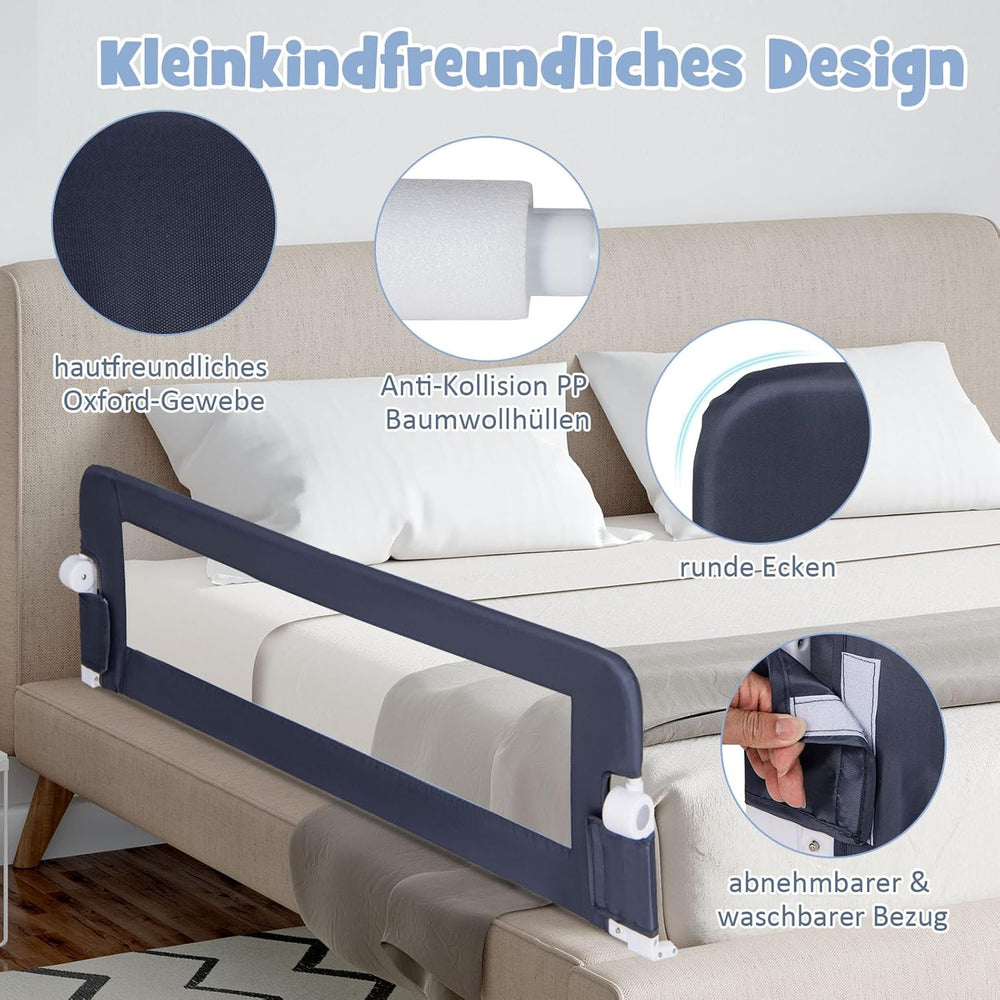 - Leicht zu reinigen und montieren – Unser Bettgitter können Sie schnell aufbauen. Zudem ist der Stoff abziehbar und in der Waschmaschine zu reinigen. Darüber hinaus sind Oxford Gewebe pflegeleicht und trocknet schnell, damit Sie Zeit sparen können.